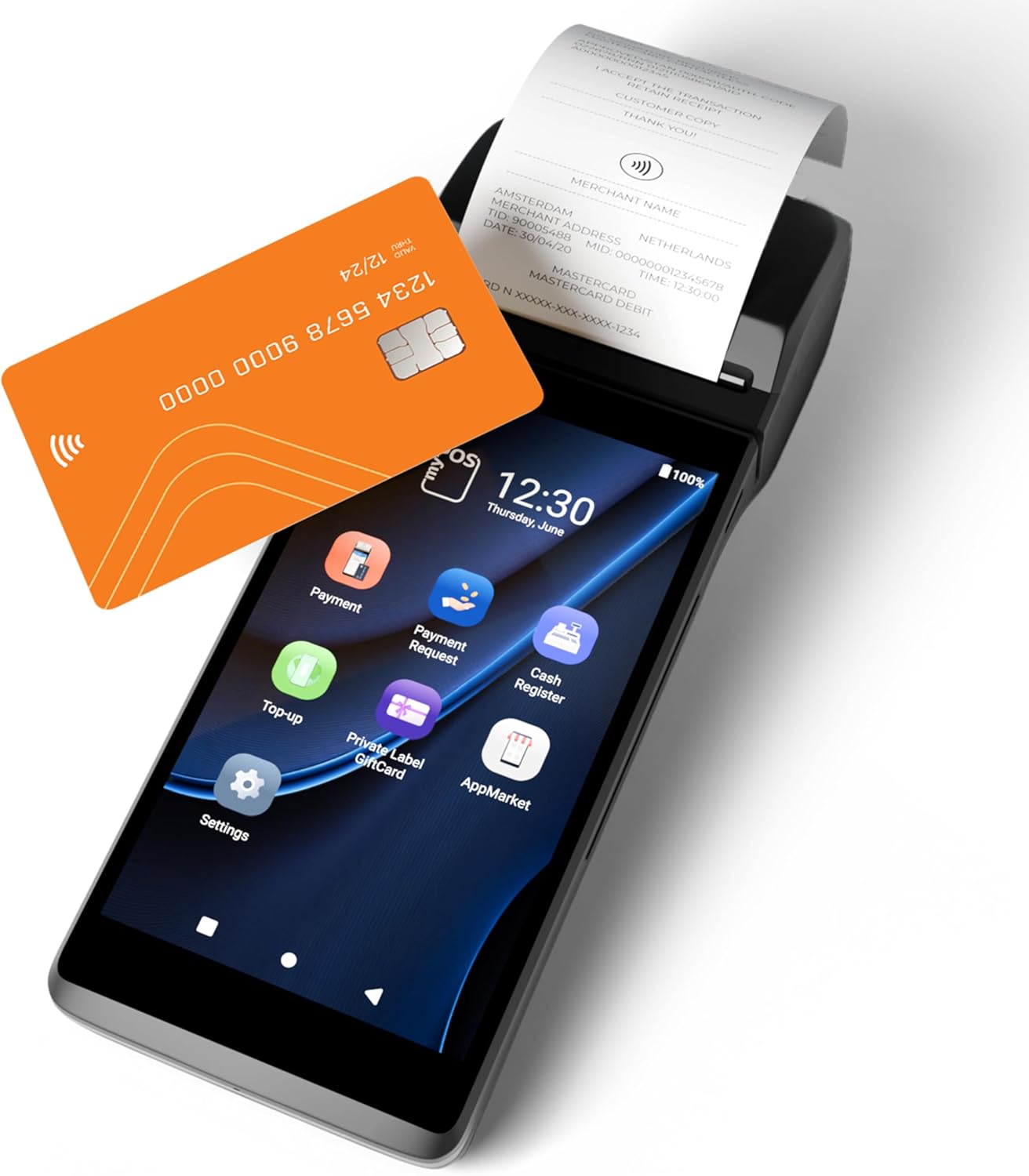 Bovendien wordt een gratis simkaart met onbeperkte databundel meegeleverd, zodat je altijd verbonden bent. Accepteer moeiteloos alle betaalmethoden, van pinpassen tot QR-codes.